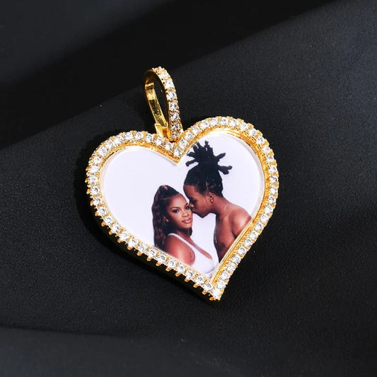 Custom Iced Out Photo Heart Necklace