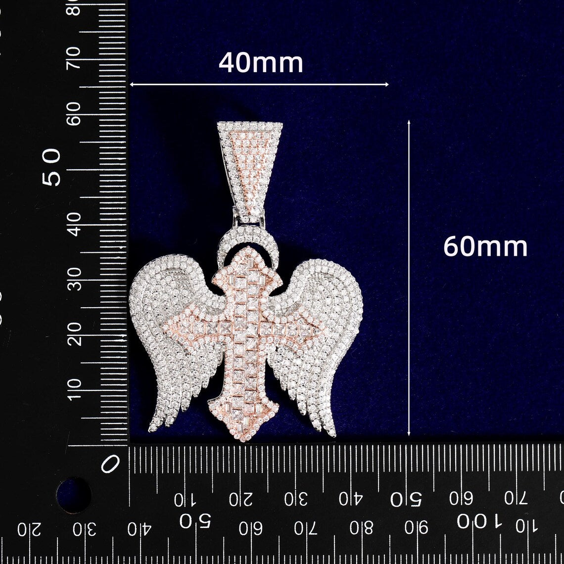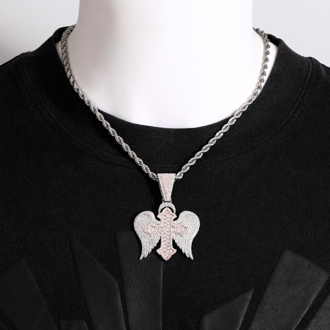 Elevate your style with our Iced Out Cross Wings Pendant! Perfect for any occasion, this pendant exudes elegance and edginess with its intricate design and sparkling crystals. Make a statement and show off your unique sense of fashion with this stylish accessory.