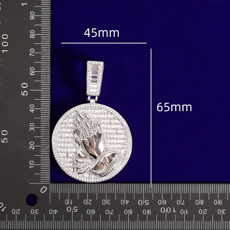Elevate your style and faith with our Iced Out Praying Hands Pendant! Crafted with precision and encrusted with stunning crystals, this piece is a symbol of strength and faith. Make a statement and inspire those around you with every wear. Perfect for both casual and formal occasions.